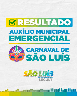 A Prefeitura de São Luís, por meio da Secretaria Municipal de Cultura (Secult), divulgou, nesta quarta-feira (31), o resultado com os habilitados para recebimento do Auxílio Municipal Emergencial – Carnaval de São Luís, conforme o Edital de Chamamento Público n° 02/2021.