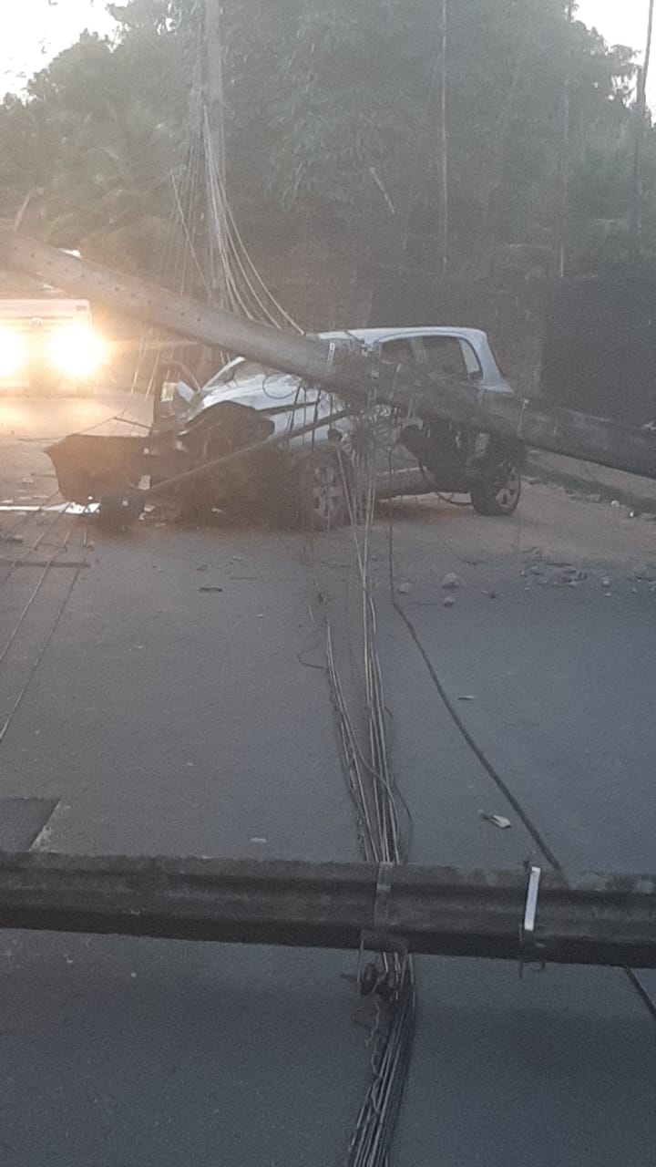 Na manhã desta segunda-feira (13), um carro provocou um acidente, próximo a ponte Pai Ignácio. O acidente derrubou três postes na região e acabou comprometendo o trânsito na Avenida Nossa Senhora da Vitória e região.
