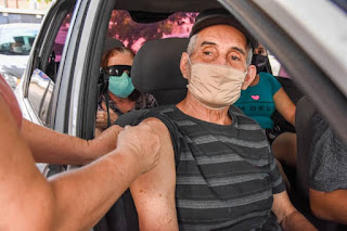 Nesta terça-feira (30), ocorreu a vacinação das pessoas com 70 anos de idade nascidas entre janeiro e junho. Pela manhã, foram imunizados os indivíduos entre janeiro e março. À tarde, foi a vez dos vacinados entre abril e junho. Para a vacinação, os interessados – além do cadastro prévio – levaram um documento oficial com foto.