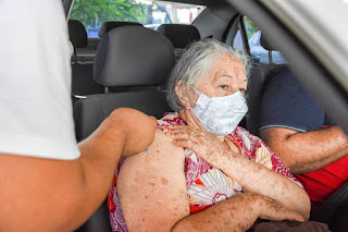 Nesta terça-feira (30), ocorreu a vacinação das pessoas com 70 anos de idade nascidas entre janeiro e junho. Pela manhã, foram imunizados os indivíduos entre janeiro e março. À tarde, foi a vez dos vacinados entre abril e junho. Para a vacinação, os interessados – além do cadastro prévio – levaram um documento oficial com foto.