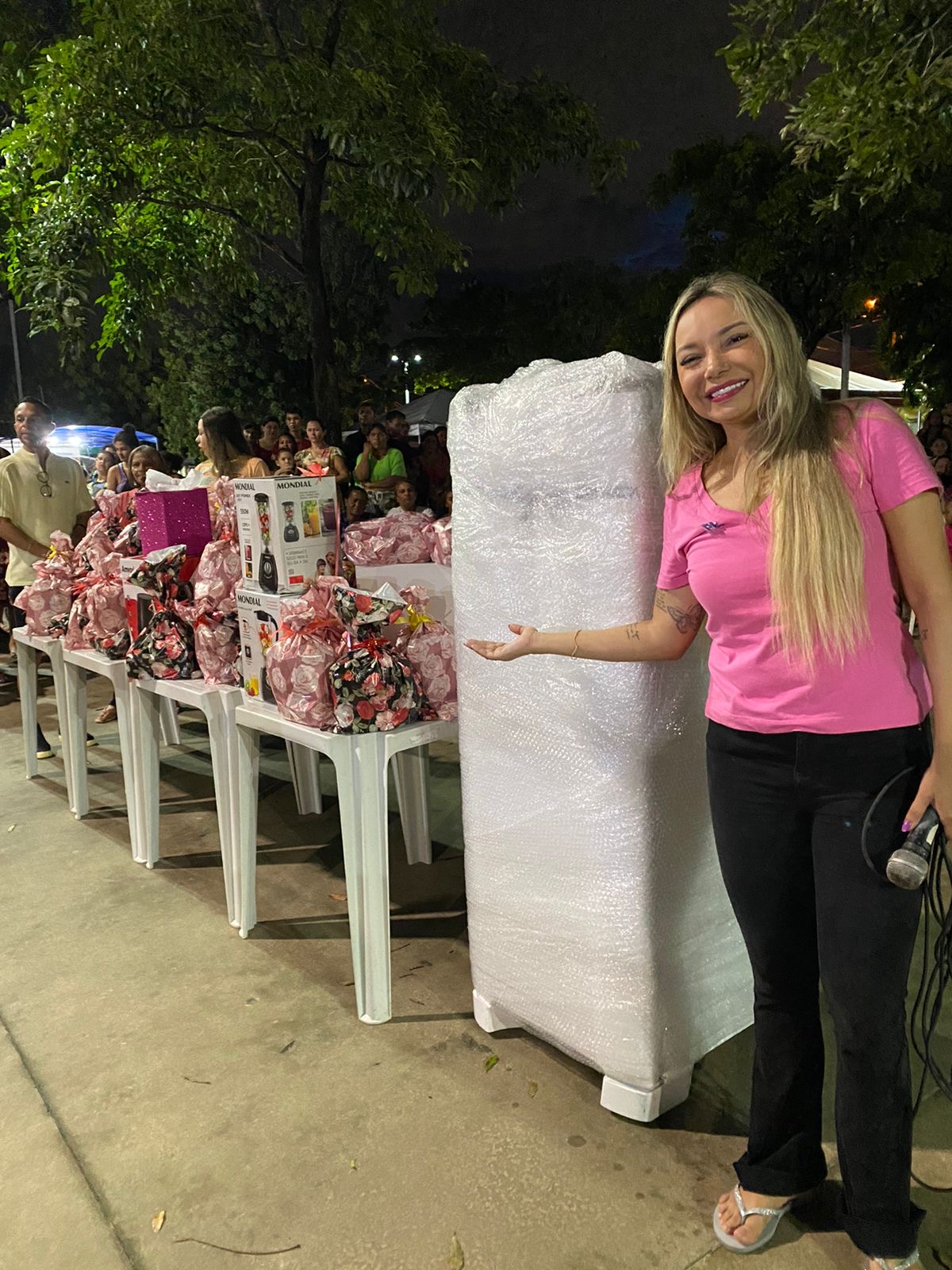 Neste sábado (11), a jornalista e empresária Rejanny Braga fez a alegria de centenas de mães do bairro São Raimundo, em São Luís. Durante uma festa animada, realizada na praça da família, teve o sorteio de vários presentes. Foram entregues eletrodomésticos, utensílios de casa e outros brindes que agradaram mamães de todas as idades. Teve até uma geladeira novinha, para uma das sortudas.